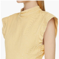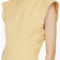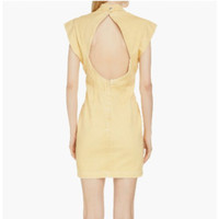 '80s styles, Isabel Marant's 'Nina' mini dress designed with a graphic skin-revealing cutout at the back. It is made from yellow stretch-denim and has short capped sleeves and seams to define the waist. Size is 10 and it is true to size Fabric: 99% Cotton, 1% Elastane, Lining: 100% Cotton