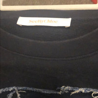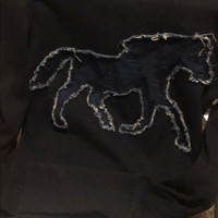 See by Chloe denim horse appliqué Sweatshirt. Worn twice no stains or tears. Color is a dark navy the horse is denim. Size Small fits small to medium. Great look perfect winter sweatshirt
