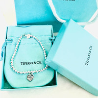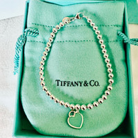 New never worn in perfect condition no scratches. Purchased in November Comes with Tiffany box, dust pouch, gift bag and gift receipt. ( item is not eligible for return) Product Details Gender: Women Brand: TIFFANY & CO. Product Name: Heart Tag Bead Bracelet Blue Silver Color: silver Composition: Sterling Silver Origin: USA Features: * Jewelry_Bracelet types_Beads Bracelet Designer Style ID 60136706