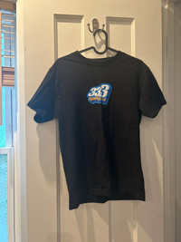 Black, Blue, and Orange Half Evil Logo Tee.
