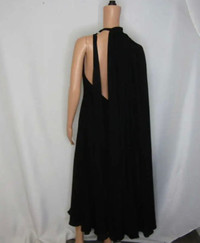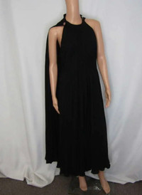 Valentino Pleated Halter-Neck Cape-Back Georgette Maxi Dress From Bergdorf Goodman Valentino pleated georgette dress with caped back Halter neckline; open back Sleeveless A-line silhouette Maxi length Back zip Silk Viscose lining Dry clean Made in Italy