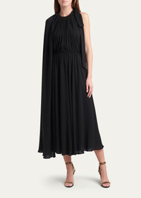 VALENTINO Valentino Pleated Halter-Neck Cape-Back Georgette Maxi Dress