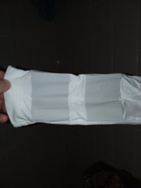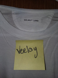 This is by far the weirdest shirt I've ever seen. At a glance, it may seem like a typical lightweight cotton longsleeve, but while the sihlouette is pretty standard, the functionality of this shirt is pretty unusual. The sleeves are patterned with this grey sandpaper-like material (not actual sandpaper). I honestly have no idea why it's designed this way. My only guess is that it's a long sleeve that's meant to be layered and the sandpaper material prevents bunching up on the sleeves. Other than that, it's a nice little detail to give a standard shirt some pop. No size tags as this was a sample piece for used for store bulk purchasing. I'm pretty open on this once so feel free to ask for pics/measurements/make offers.
