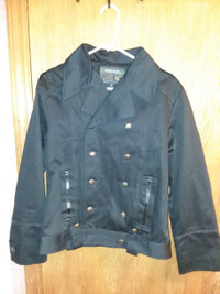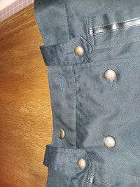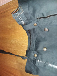 A somewhat unusual double-breasted peacoat. Has elements of an M84 jacket, peacoat, and motorcyle jacket. Comes with an additional belt that is meant for looping near the waist (see pic, but I'm honestly not sure how it's really meant to be worn) and has some nice faux leather accents. I also think one of the buttons is missing, but I'm not sure if it's even meant to be there or not. Other than that, no flaws. Tagged as an M, but seems to be on the smaller side, or at least cropped. Refer to the measurements for a more accurate fit. Very open to offers.