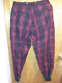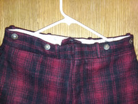 Extremely heavy duty wool pants. By far the heaviest pants I've ever worn. Estimated age is likely at least 40 years given the Woolrich logo. No tears, holes, with minor color fading due to age. Contains all original buttons/tags. Has built-in clasps for suspenders or belt usage and tapered cuffs for insulation. Guaranteed to keep you warm as hell. I'm open to offers and requests for more pics/measurements, but please keep in mind that this is heavy-duty wool. These pants weight ~4 pounds by themselves.