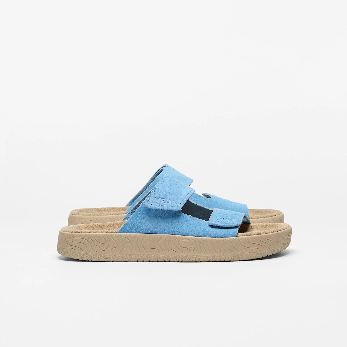 VEJA presents Etna, it’s first sandal. This new model pays tributes to the brand’s Brazilian roots. Between city, nature and adventure, Etna invites us to explore and travel. Upper: Suede Lining: Suede Insole: Bio-based E.V.A. (57%, including 41% sugar cane), recycled E.V.A. (11%) and others (32%) Outsole: Amazonian rubber (50%), mineral silica (26%), synthetic rubber (5%) and others (19%) Made in Brazil Suede is the underside of leather, sanded to give it a soft and smooth feel. It comes from farms in the Rio Grande do Sul region and is tanned in Brazil without harmful or prohibited chemicals. VEJA uses dyes that meet regulations and prioritizes responsible water use during the tanning process. This suede is then coated with PFC-free water-repellent oils to shield the shoes from light rain.