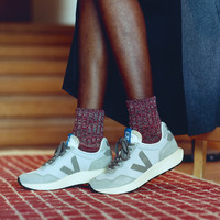 VEJA launches the Paulistana, its new retro-running model, featuring an asymmetrical design and thick sole. Upper: Alveomesh (100% recycled polyester) Panels: Suede Logo V: Suede Insole: Amazonian rubber (11%), bio-based E.V.A.* (53%, including 42% sugarcane), recycled E.V.A.* (11%), organic cotton (12%) and others (13%) Midsole: E.V.A.* bio-sourced (88%, including 59% sugar cane) and others (12%) Outsole: Amazonian rubber (12%), mineral silica (30%), synthetic rubber (49%) and others (9%) Lining: Recycled polyester (100%) Laces: Organic cotton (100%) Made in Brazil The Alveomesh is a technical fabric made out exclusively of recycled polyester. It brings breathability, flexibility and lightness to the shoe.