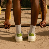 Upper: C.W.L. Panels: Coated canvas Logo V: Amazonian rubber (26%), mineral silica (22%), synthetic rubber (21%) and others (31%) Insole: Amazonian rubber (11%), bio-based E.V.A.* (53%, including 42% sugarcane), recycled E.V.A. (11%), organic cotton (12%) and others (13%) Outsole: Amazonian rubber (40%), mineral silica (23%), recycled rubber (10%), synthetic rubber (11%) and others (16%) Lining: Recycled polyester (100%) Laces: Organic cotton (100%) Made in Brazil C.W.L. stands for Cotton Worked as Leather. This vegan alternative to leather has a similar look and high durability. It is 54% bio-based, made from 100% organic cotton canvas coated with a PU, corn starch, and ricinus oil.