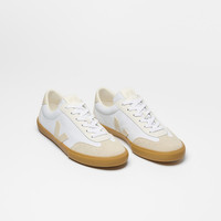 Inspired by the Brazilian volleyball shoes of the 70s, VEJA is reissuing the Volley - its very first model launched in 2005. Upper: Canvas (100% organic cotton) Panels: Suede and Leather Insole: Amazonian rubber (11%), E.V.A. bio-sourced (45%, including 36% sugar cane), recycled E.V.A. (13%), organic cotton (5%) and others (26%) Outsole: Amazonian rubber (50%), mineral silica (26%), synthetic rubber (5%) and others (19%) Lining: Recycled polyester (100%) Laces: Organic cotton (100%) Made in Brazil Cotton is cultivated in Brazil and Peru by associations that respect people and the environment, according to fair trade principles. In Brazil, cotton is organic and agroecological. This agriculture enriches the land after being cultivated by improving the diversity of species cultivated and water retention in the soil. In Peru, farmers grow certified organic and regenerative cotton. They receive support in their certification process and receive technical and financial assistance to improve their production.