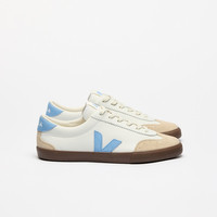 Inspired by the Brazilian volleyball shoes of the 70s, VEJA is reissuing the Volley - its very first model launched in 2005. Upper: Organic Traced leather (O.T.) Panels: Organic Traced leather (O.T.) and Suede Logo V: Suede Insole: Amazonian rubber (11%), bio-based E.V.A. (53%, including 42% sugarcane), recycled E.V.A. (11%), organic cotton (12%) and others (13%) Outsole: Amazonian rubber (40%), mineral silica (23%), recycled rubber (10%), synthetic rubber (11%) and others (16%) Welt: Synthetic rubber (40%), mineral silica (22%) and others (38%) Lining: Recycled polyester (100%) Laces: Organic cotton (100%) Made in Brazil O.T. Leather (Organic Traced) comes from 100% certified organic farms in Uruguay, a country known for its livestock farming culture and high-quality leather. This is our softest and thinnest leather. It is mechanically treated to gain suppleness and finesse, then tanned in Brazil using fewer dyes than conventional leather. VEJA uses dyes that comply with regulations and ensures responsible water use during the tanning process.