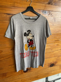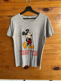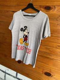 SKU KB3WR3 ⸻ Era Late 1980s – 1990s (vintage Champion era, Made in USA) ⸻ Gender Unisex ⸻ Color Heather Grey (with multicolor graphic: black, red, yellow) ⸻ Founder • Champion: Founded in 1919 by the Feinbloom brothers (USA) • Disney / Mickey Mouse: Created by Walt Disney & Ub Iwerks (1928) ⸻ Brand Information Champion is a historic American sportswear brand known for durable athletic apparel and iconic collegiate wear. This piece features an officially licensed Disney Mickey Mouse graphic combined with Texas Tech collegiate branding, making it highly collectible among vintage and pop-culture fans. ⸻ Type of Garment Short Sleeve Graphic T-Shirt ⸻ Tips of Style • Pair with vintage denim or carpenter pants for a classic 90s look • Works well under a denim jacket or varsity jacket • Ideal for casual streetwear or vintage collegiate outfits ⸻ Description A vintage Champion Made in USA graphic T-shirt featuring Mickey Mouse in a classic pose with Texas Tech lettering. Constructed from a 50% cotton / 50% polyester blend, offering lightweight comfort and durability. The graphic shows natural aging and fade, adding authentic vintage character. A rare crossover between Disney and American collegiate culture. ⸻ Rating (1–10) & Condition • Rating: 7.5 / 10 • Condition: • Noticeable vintage wear and fading on print • Light fabric wear consistent with age • No major holes; structure remains solid (Overall good vintage condition) ⸻ Conclusion This vintage Champion Mickey Mouse Texas Tech T-shirt is a standout collectible piece combining Disney nostalgia, collegiate heritage, and classic American sportswear. Perfect for collectors, vintage enthusiasts, or anyone looking for a unique statement tee with authentic 90s character.
