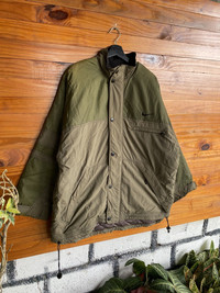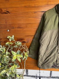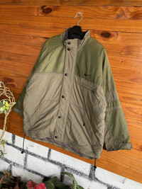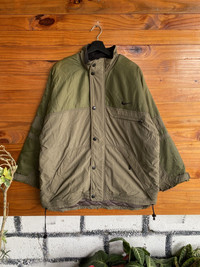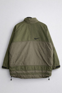 SKU KB1WR1 ⸻ Era Late 1990s – Early 2000s (Vintage Nike period, quilted inner lining, Malaysia production) ⸻ Gender Men’s ⸻ Color Olive Green / Khaki (Two-Tone) Inner lining: Brown quilted fabric ⸻ Founder Nike was founded by Phil Knight and Bill Bowerman in 1964. ⸻ Brand Information Nike is an American sportswear and lifestyle brand known worldwide for performance apparel, footwear, and innovative outerwear. Vintage Nike jackets from the late 90s–early 2000s are especially sought after for their durable construction, functional design, and classic branding. ⸻ Type of Garment Insulated Jacket / Outdoor Jacket • Quilted inner lining • Button front closure • Drawstring hem • Zip and flap pockets • Embroidered Nike Swoosh • Made in Malaysia • Size: Men’s XL ⸻ Style Tips • Pair with cargo pants or tactical trousers for a vintage outdoor look • Works well with denim and boots for streetwear styling • Layer over a hoodie or sweatshirt in cooler weather • Ideal for casual wear, hiking, or urban utility outfits ⸻ Description This vintage Nike insulated jacket features a classic two-tone olive green and khaki colorway with a quilted inner lining for warmth. Designed for functionality, it includes multiple pockets, adjustable hem cords, and a sturdy button closure. The embroidered Nike Swoosh adds a timeless branded touch. A solid example of late-90s/early-2000s Nike outerwear with durable materials and practical construction. ⸻ Rating (1–10) 7.5 / 10 ⸻ Condition Good vintage condition. • Visible signs of wear consistent with age • Light stains and marks on fabric (as shown in photos) • No major tears or structural damage • Fully wearable and functional ⸻ Conclusion A solid vintage Nike jacket with classic outdoor aesthetics and practical design. Ideal for collectors, vintage streetwear enthusiasts, or anyone looking for a durable, stylish jacket with authentic 90s–2000s Nike character.