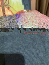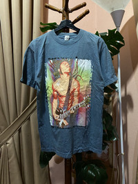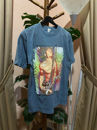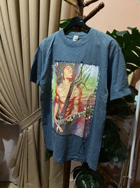 SKU RS130 ⸻ 🕰️ Era Late 1990s (1998) Confirmed by the copyright print on the graphic. ⸻ 🚹 Gender Unisex, originally sold as Men’s. ⸻ 🎨 Color Faded blue-grey with multicolor front graphic & back print. ⸻ 👤 Founder / Artist This is merchandise, not a fashion brand. But the artist featured is: Lenny Kravitz American rock musician, Grammy-winning artist. ⸻ 🏷️ Brand Information • Tag: Fruit of the Loom – Best • Made in: USA • Fabric: 100% Cotton • RN 88434 confirms authenticity of USA production. • Typical of late 90s concert merch—highly collectible now. ⸻ 👕 Type of Garment Vintage concert graphic T-shirt Front: Lenny Kravitz performing Back: “LENNY LIVE” large text graphic ⸻ 🧵 Description A genuine 1998 Lenny Kravitz tour T-shirt featuring a vibrant photo print of Lenny holding his guitar mid-performance. The shirt has desirable 90s qualities: • Soft, worn-in cotton • Faded blue tone • Double-sided print (increases value) • Original USA-made tag • Copyright year clearly visible This is the type of shirt sought after by rock band collectors, vintage shops, and fans of 90s music culture. ⸻ ⭐ Condition & Rating (1–10) Condition: Good vintage but with visible wear Details: • Fading: Yes • Graphic: Still strong • Minor cracking in print: Normal for age • No major holes seen • Light wrinkles from storage 👉 Rating: 7.5/10 (Very good for a 1998 tee) ⸻ 👔 Tips for Styling For a streetwear look: • Pair with faded black jeans • Add a vintage denim or leather jacket • Wear with Converse or Dr. Martens For a rock/grunge look: • Layer over long-sleeve thermal • Combine with ripped denim For casual everyday style: • Loose fit tucked slightly into chinos or shorts ⸻ 📌 Conclusion This 1998 Lenny Kravitz “Lenny Live” T-shirt is a legit, USA-made vintage concert piece with collectible value. The double-sided print makes it even more desirable. Light fading adds authentic vintage character, not a flaw.