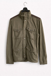 SKU KB14 ⸻ Era Late 2000s – 2010s (modern Japanese casual / military-inspired fashion era) ⸻ Gender Men (can be worn unisex with a relaxed fit) ⸻ Color Olive / Khaki Green with darker shoulder panel accents ⸻ Founder BEAMS was founded by Etsuzo Shitara in 1976 in Tokyo, Japan. ⸻ Brand Information BEAMS is a well-known Japanese lifestyle and fashion brand recognized for blending American casual, European tailoring, and Japanese streetwear aesthetics. The brand is especially respected for high-quality fabrics, practical designs, and timeless silhouettes inspired by military and workwear. ⸻ Type of Garment Military-inspired field jacket / utility jacket ⸻ Description This BEAMS jacket features a classic military field jacket silhouette with a structured stand collar and snap-button front closure. It includes four functional flap pockets on the front, reinforced shoulder panels, and a clean, minimal design. Made from 100% cotton, it offers breathability and durability, making it ideal for everyday wear or light outdoor use. The overall cut is streamlined yet practical, staying true to BEAMS’ refined casual style. ⸻ Tips of Style • Pair with dark denim or cargo pants for a classic military look • Works well over a plain white tee or lightweight knit • Finish with boots or minimalist sneakers • Great layering piece for transitional weather (spring / autumn) ⸻ Rating & Condition • Overall Rating: 8 / 10 • Condition: Good pre-owned condition • Light wrinkles from wear • No visible tears or major stains • Fabric and structure remain solid ⸻ Conclusion This BEAMS military field jacket is a versatile and timeless piece that reflects Japanese attention to detail and functional fashion. Ideal for those who appreciate clean military aesthetics with everyday wearability, it remains stylish, practical, and easy to match with various outfits.