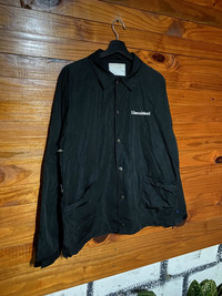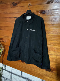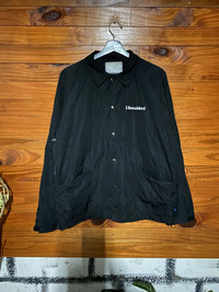 SKU RS138WR228 ⸻ Era 2010s (Modern Japanese streetwear era) ⸻ Gender Unisex (Men’s fit – size M) ⸻ Color Black (with white Liberaders logo print) ⸻ Founder Liberaders was founded by Mei Yong in Tokyo, Japan. ⸻ Brand Information Liberaders is a Tokyo-based streetwear brand known for blending military, outdoor, and urban influences. The brand emphasizes freedom of thought, exploration, and functionality, often using durable materials and minimalist graphic branding inspired by global travel and subculture. ⸻ Type of Garment Coach Jacket / Lightweight Snap Button Jacket ⸻ Description This Liberaders coach jacket features a clean black shell with snap-button front closure and a classic pointed collar. The front is accented with a minimal “Liberaders” logo, while the back showcases a bold large logo print for strong street presence. Constructed with a lightweight polyester shell and a smooth rayon-blend lining, it is ideal for layering during mild weather. A timeless silhouette that reflects modern Japanese streetwear aesthetics. ⸻ Tips of Style • Pair with cargo pants or denim for a military-street look • Layer over a hoodie or crewneck for casual urban styling • Works well with sneakers or boots for everyday wear • Ideal as a transitional jacket for spring or autumn ⸻ Rating (1–10) 8/10 ⸻ Condition Good pre-owned condition • Visible wrinkles from wear • Minor signs of use on fabric • No major tears or structural damage • Buttons and lining intact ⸻ Conclusion This Liberaders coach jacket is a solid piece of Japanese streetwear, offering versatility, comfort, and understated branding. A great choice for collectors or anyone looking to add an authentic Tokyo street-style jacket to their wardrobe.