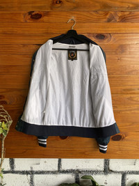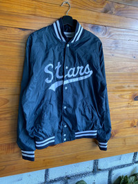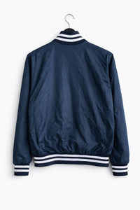 SKU KB3WR3 ⸻ Era Late 1990s – Early 2000s (Y2K / vintage casual sportswear era) ⸻ Gender Unisex (originally marketed as men’s, suitable for all genders) ⸻ Color Navy Blue with White accents (White embroidered “Stars” script, striped ribbed collar/cuffs/hem) ⸻ Founder Brand founder not publicly documented (RENNOC is known as a classic casual/sportswear label rather than a designer-led fashion house) ⸻ Brand Information RENNOC Classic is a vintage-inspired casualwear brand recognized for varsity jackets, casual sports silhouettes, and embroidered logo pieces. The brand focuses on timeless American-style streetwear aesthetics, commonly seen in bomber and varsity designs from the late 90s to early 2000s. ⸻ Type of Garment Varsity Jacket / Bomber Jacket Snap-button front, ribbed knit collar, cuffs, and hem ⸻ Tips of Style • Pair with plain white tee + straight or baggy jeans for a classic streetwear look • Works well with cargo pants or chinos • Complete the outfit with sneakers (New Balance, Nike, Adidas) or loafers for a vintage twist • Can be layered over a hoodie for colder weather ⸻ Description This RENNOC Classic varsity jacket features a clean navy blue body with bold white embroidered “Stars” lettering across the chest. Designed with a snap-button front closure, ribbed striped collar and cuffs, and a lightweight yet durable outer shell, it reflects authentic vintage American casual sportswear style. The minimalist back design keeps it versatile and timeless, making it suitable for daily wear or collectors of retro streetwear. ⸻ Rating (1–10) 7.5 / 10 ⸻ Condition Good vintage condition • Light wrinkles from storage • Minor signs of wear consistent with age • No major stains or structural damage observed ⸻ Conclusion This RENNOC Classic “Stars” varsity jacket is a solid vintage streetwear piece with timeless appeal. Ideal for casual outfits, collectors, or anyone looking to add an authentic retro bomber jacket to their wardrobe. Its simple design, quality embroidery, and versatile color make it an easy-to-style everyday vintage essential.