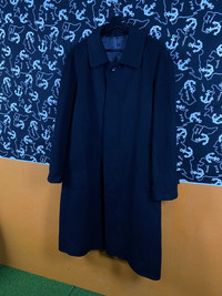 SKU KB16 Era Late 1990s – Early 2000s (classic tailored outerwear period) Gender Men (can be worn unisex for oversized or minimalist styling) Color Black / Deep Charcoal Black Founder • Duke Clothing – British menswear brand (established UK tailoring heritage) • Thames Point – Line/label associated with classic European-inspired outerwear Brand Information Thames Point is known for producing timeless, clean-cut outerwear with a focus on practicality and traditional tailoring. Duke Clothing is a UK-based menswear brand recognized for affordable, classic coats, suits, and smart-casual garments inspired by British tailoring traditions. Type of Garment Long coat / Overcoat Single-breasted Mid-to-long length Lined interior Fabric & Construction (from tag) • Outer: Wool blend (wool dominant) • Lining: Polyester • Structured collar • Side pockets • Smooth inner lining for layering Tips of Style • Pair with a turtleneck, tailored trousers, and leather boots for a clean minimalist look • Works well over suits for formal wear • Can be styled casually with jeans and sneakers for modern street tailoring • Ideal for monochrome or all-black outfits Description This Thames Point by Duke Clothing long coat features a timeless silhouette with a clean, structured finish. The wool-blend fabric provides warmth while maintaining a sharp drape. Its minimalist design, classic collar, and tailored cut make it versatile for both formal and casual styling. A solid vintage outerwear piece that never goes out of trend. Rating (1–10) 8.5 / 10 Condition Very good vintage condition • No major stains or tears • Lining intact • Normal signs of gentle wear consistent with age Conclusion A solid vintage classic long coat with strong British tailoring influence. Perfect for collectors, smart-casual wardrobes, or anyone looking for a timeless black overcoat that elevates any outfit. Reliable, stylish, and easy to wear across seasons.