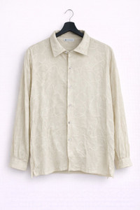 SKU KB8 ⸻ Era Late 1990s – Early 2000s ⸻ Gender Unisex ⸻ Color Light Beige / Stone / Cream ⸻ Founder Yohji Yamamoto ⸻ Brand Information Yohji Yamamoto is one of Japan’s most influential avant-garde fashion houses, founded by Yohji Yamamoto. Known for deconstruction, oversized silhouettes, poetic minimalism, and experimental fabric treatments, the brand consistently challenges conventional fashion norms. This piece reflects Yamamoto’s quieter, textural side—subtle, artistic, and intentionally imperfect. ⸻ Type of Garment Long Sleeve Shirt / Lightweight Artistic Overshirt ⸻ Description This Yohji Yamamoto shirt features an all-over abstract embroidered line pattern, creating a hand-drawn, organic visual texture. The soft, lightweight fabric drapes naturally, emphasizing the relaxed and fluid silhouette synonymous with Yamamoto’s design language. Finished with minimalist metal buttons and a clean collar, the piece balances conceptual design with everyday wearability. A strong example of Yohji Yamamoto’s understated avant-garde aesthetic. ⸻ Tips for Styling • Pair with wide trousers, cropped pants, or relaxed slacks • Style oversized for a classic Yohji silhouette • Wear buttoned up for a clean look or open-layered • Best matched with black, off-white, or neutral palettes ⸻ Rating (1–10) 7.5 / 10 ⸻ Condition Fair Vintage Condition • Visible small stains and marks (clearly shown in photos) • Light fabric wear consistent with age • No major structural damage • Embroidery and buttons remain intact Condition reflected in price; please review images carefully. ⸻ Conclusion A genuine Yohji Yamamoto vintage piece showcasing his artistic and minimalist approach to fashion. While it shows signs of age, it retains strong design identity and collectible value. Ideal for Yohji enthusiasts, avant-garde collectors, or those who appreciate authentic Japanese fashion with character.