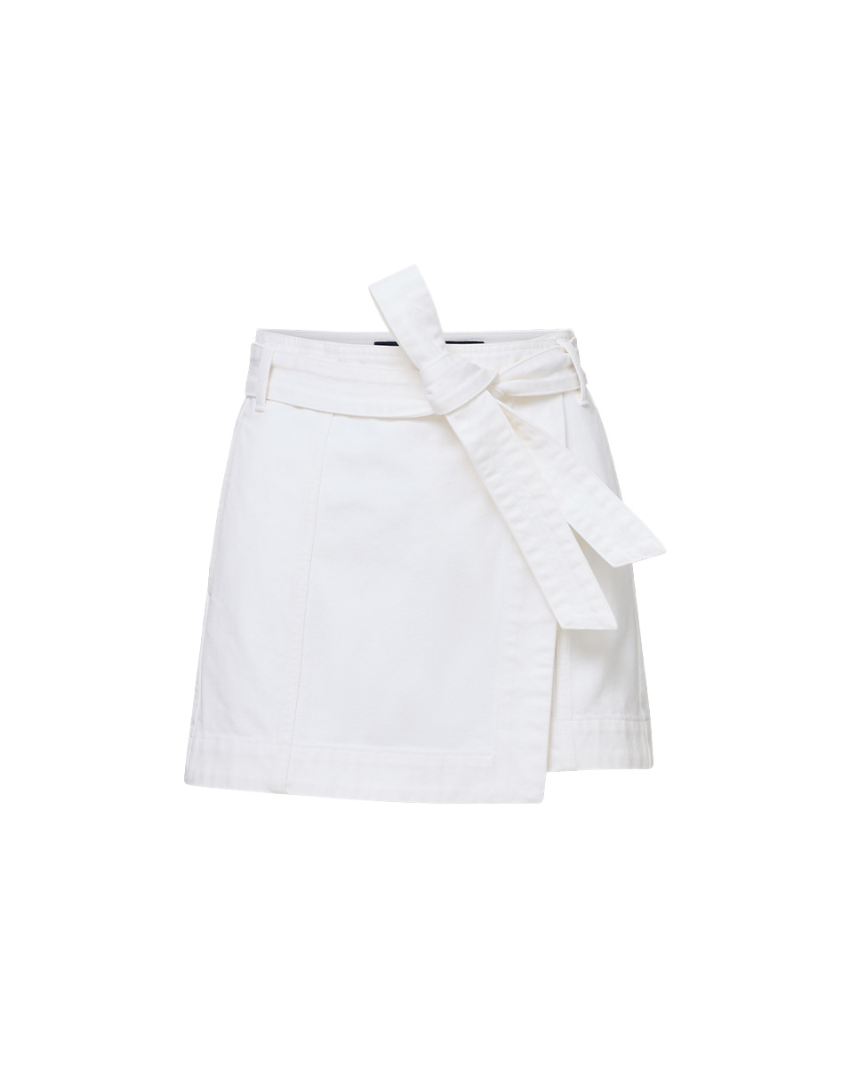 Product details The spring skort, perfected. Crafted from a stark white heavyweight cotton blend, Agee's high-waisted, mini-length silhouette is designed for a close fit, finished with wrap-front skirt details. Side slip pockets, back patch pockets, and a matching tie belt complete the look. Style with an airy button-down blouse and strappy sandals for a chic warm-weather look. - Details: 89% Cotton, 11% Polyester - Unlined - Turn inside out and machine wash cold. Hang to dry. - Style #J2504D140035WH