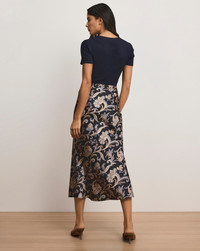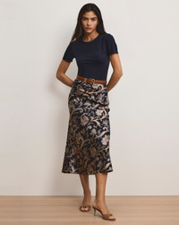 Product details The ultimate foundation for an elevated wardrobe. Crafted from a premium stretch blend, the navy Benedict T-shirt is cut for a slim, body-skimming fit with a clean crew neckline and short sleeves. Wear this versatile top on its own, tucked into denim, or layered under your favorite blazers and cardigans. - 90% Lyocell, 10% Elastane - Turn inside out and machine wash cold with like colors. Delicate cycle. Tumble dry on low. Do not bleach. - Style #J2602JY147T0920