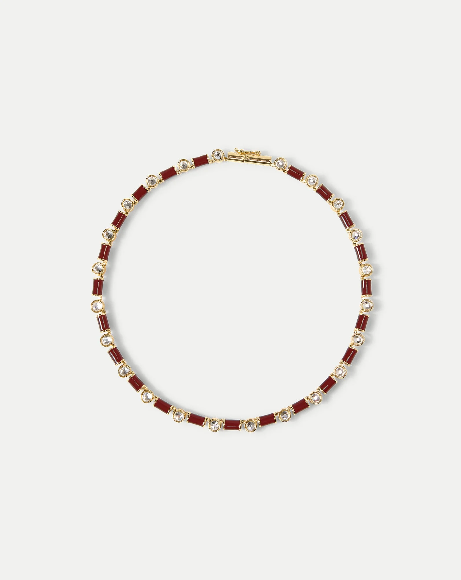 BURGUNDY ENAMEL AND CRYSTAL BARREL NECKLACE