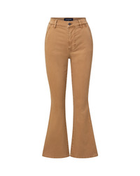 Product details The Carson you know and love, now in golden brown and with slanted slip pockets. Made from premium stretch denim, this VB favorite features a high-rise waist and is fitted through the hips and thigh with a cropped, flared leg. Style with a tee and sneakers for day; dress it up with a jacket and heels for nights out. - 97% Cotton, 3% Spandex - Closure: Zip fly - Turn inside out and machine wash cold. Hang to dry. - Style #J25079421037A2