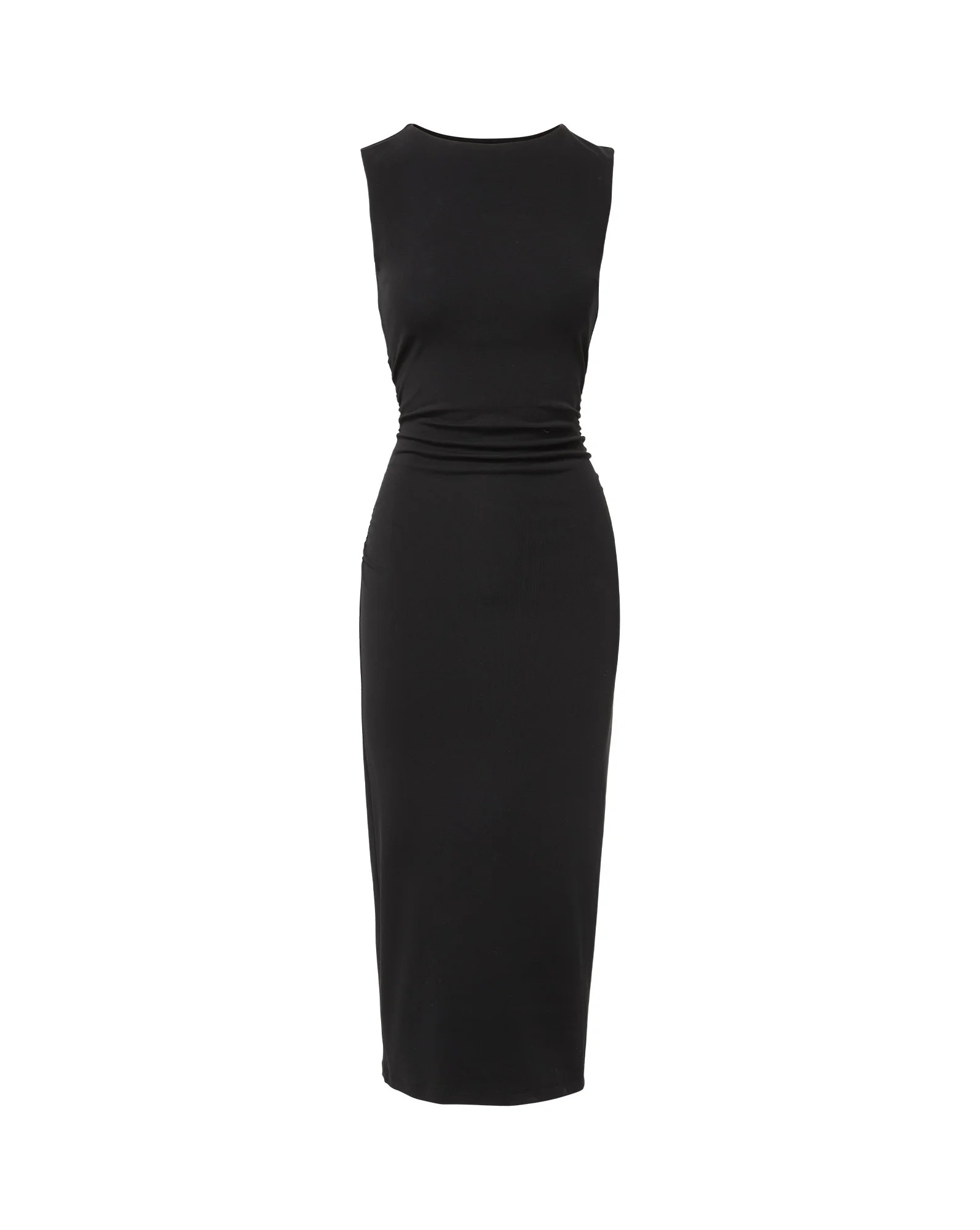 Feels like your favorite tee, looks like a sleek LBD. This sultry number boasts figure-flattering stretch, ruching down the sides and an elegant boat neckline. Just add strappy heels. DETAILS & FIT - 92% Cotton, 8% Elastane - Unlined - Length 46", based on a size S - Our model is 5'10" and is wearing a size S - Machine wash cold - Style #J2408JY14521154