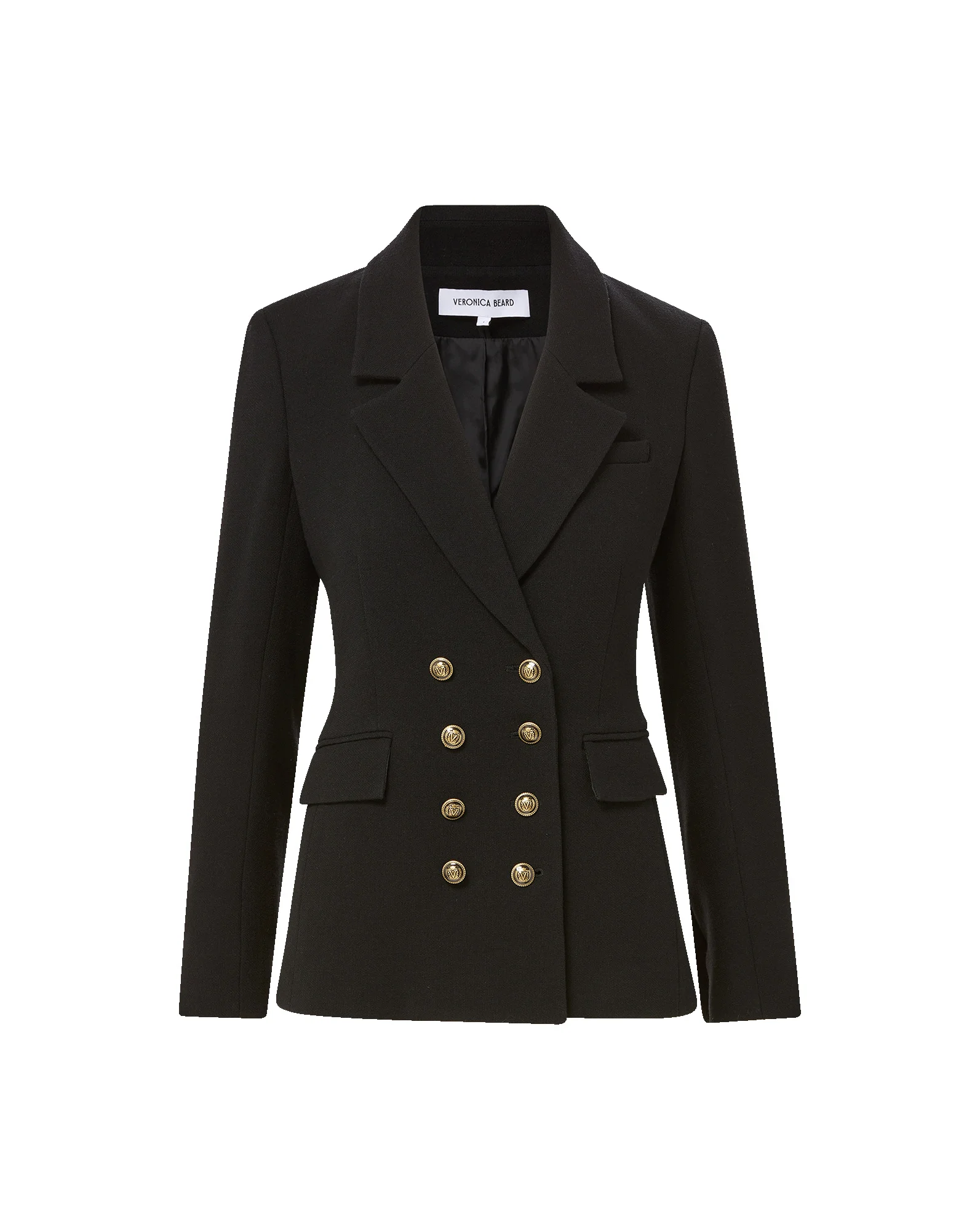 Product details Meet Claude, our newest double-breasted blazer silhouette. Expertly crafted from an Italian virgin wool blend, it features a slim fit, nipped at the waist for definition. An exaggerated lapel with a low breakpoint completes the look, creating a modern, elongating finish. Style this black jacket with jeans, ankle boots, and your favorite dickey for a classic VB uniform. - 96% Virgin Wool, 4% Elastane - Lining: 100% Cupro - Fabric country of origin: Italy - Dry clean only - Style #2511TW12111445