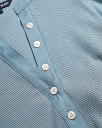Product details Meet the Coralee tee, our feminine take on the classic henley t-shirt. Elbow-length puffed sleeves exude soft romance while a relaxed fit and shortened five-button placket add an ease. Consider this light blue top a new favorite go-to—equally great on its own or as a layering essential. Wear with jeans and sneakers or dress it up with a denim mini, blazer, and heels. - 96% Cotton, 4% Elastane - Turn inside out and machine wash cold. Lay flat to dry. - Style #J2506JY1520831