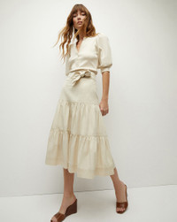 The Coralee top is a feminine take on the classic button-down shirt, with puffed short sleeves and split V-neck. A half button-down placket gives it a refined finish. Wear with high-rise flare jeans and boots for sophisticated polish. DETAILS & FIT - 97% Cotton, 3% Elastane - Length 24” | Sleeve Length 21.5”, based on a size S - Our model is 5'10" and is wearing a size S - Machine wash cold - Style #J2403JY0200831 - This style runs large. We suggest taking your next size down.