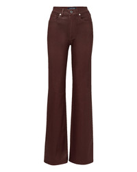 Product details The Crosbie you know and love—now in a deep raisin wash, coated for a sleek sheen. Made in LA from super-stretch coated Japanese denim, this high-rise, slimmed-out wide-leg jean is fitted through the hips and thighs and expertly tailored for an elongating effect. Patch pockets and our signature V belt loops complete the look. For an elevated take on casual-chic, we love pairing it with a simple T-shirt and heels. - 92% Cotton, 6% Polyester, 2% Polyurethane - Made in LA from premium Japanese denim - Turn inside out and machine wash cold. - Style #J2510D230827RI