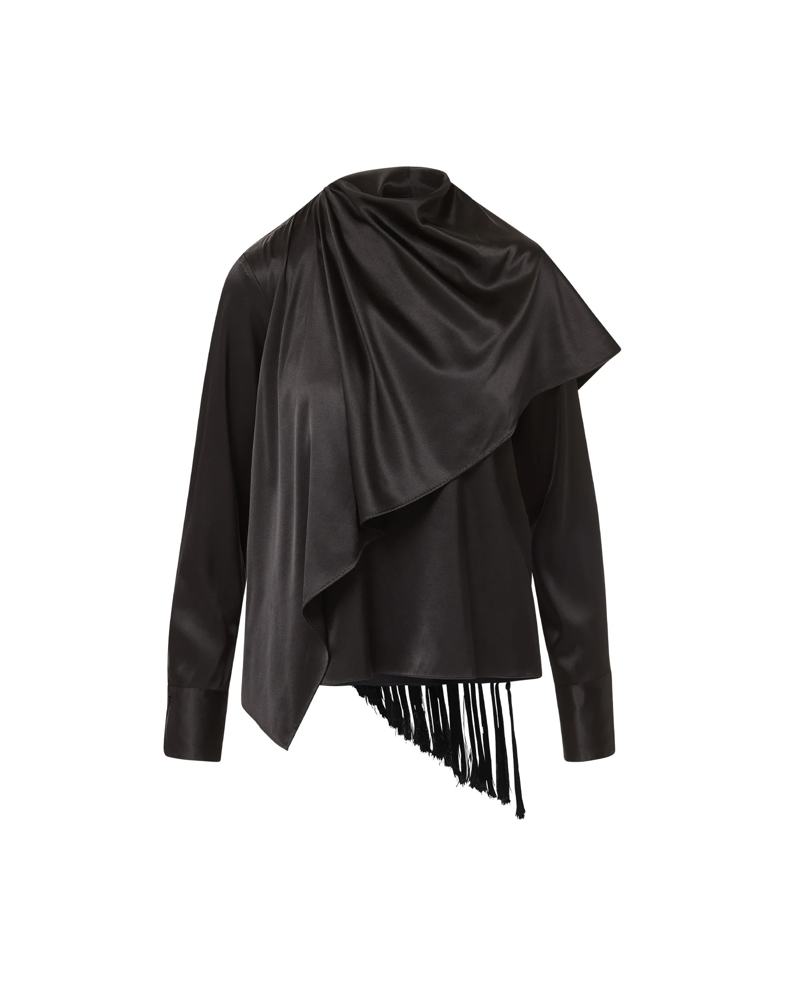 Product details Easy elegance. The Daleney blouse is crafted from a premium silk blend and features a built-in scarf that drapes effortlessly over the shoulder, finished with tasseled ends for a hint of dimension and drama. Cuffed long sleeves and a keyhole back button closure complete the look. Pair with black trousers for a sleek look—or denim for something more relaxed. - 53% Silk, 35% Viscose, 12% Elastane - Dry clean only - Style #2509FL5041352