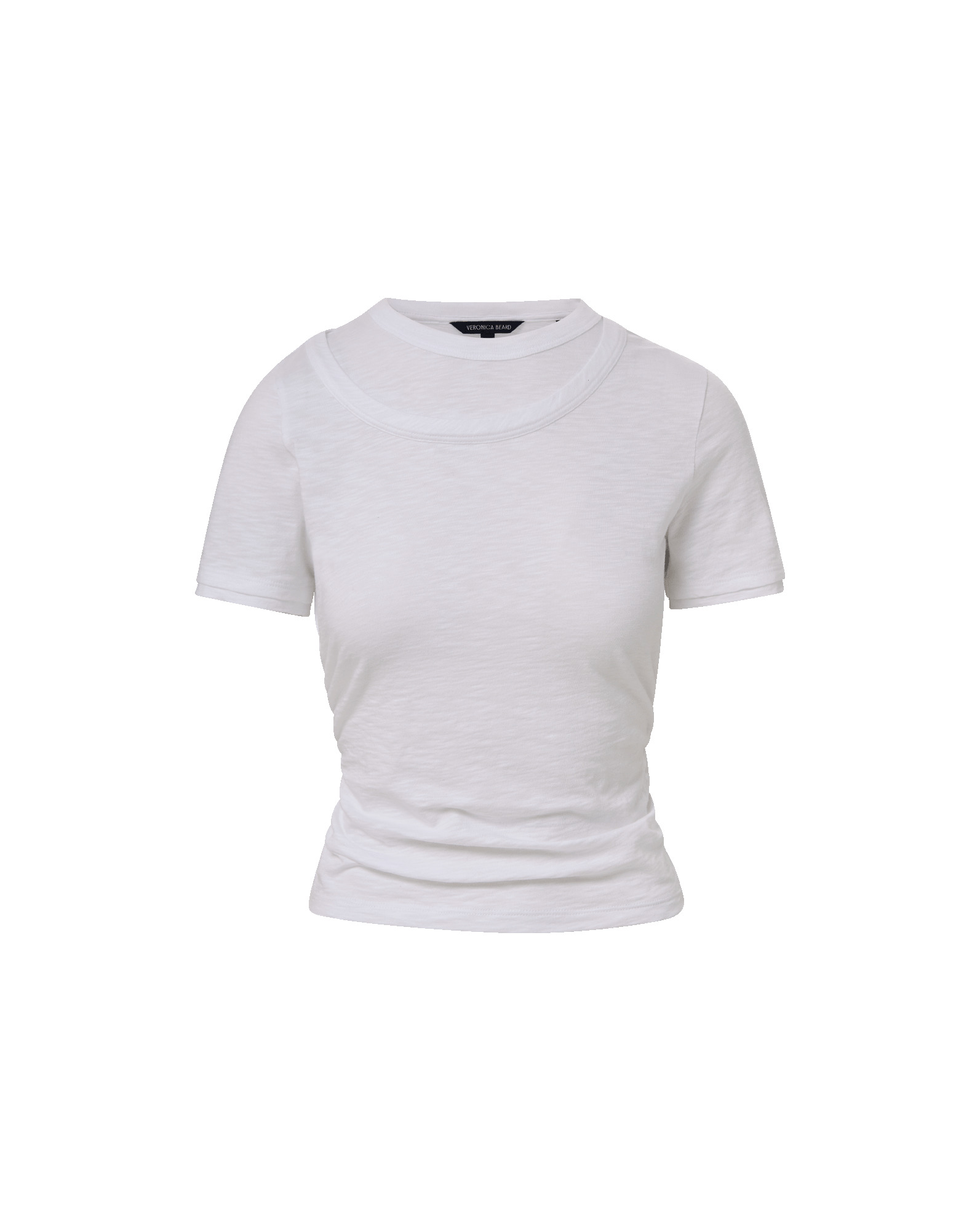 Product details The classic tee, reimagined with thoughtful details. Crafted from soft cotton slub jersey, the Damian features a flattering fitted silhouette with side ruching to define the waist. A mock double crewneck collar and layered short sleeves finish the look, adding subtle dimension. Wear it with your favorite denim for everyday ease, or layer under a blazer for a polished look. - 100% Cotton - Machine wash cold - Style #J2508JY007T0495