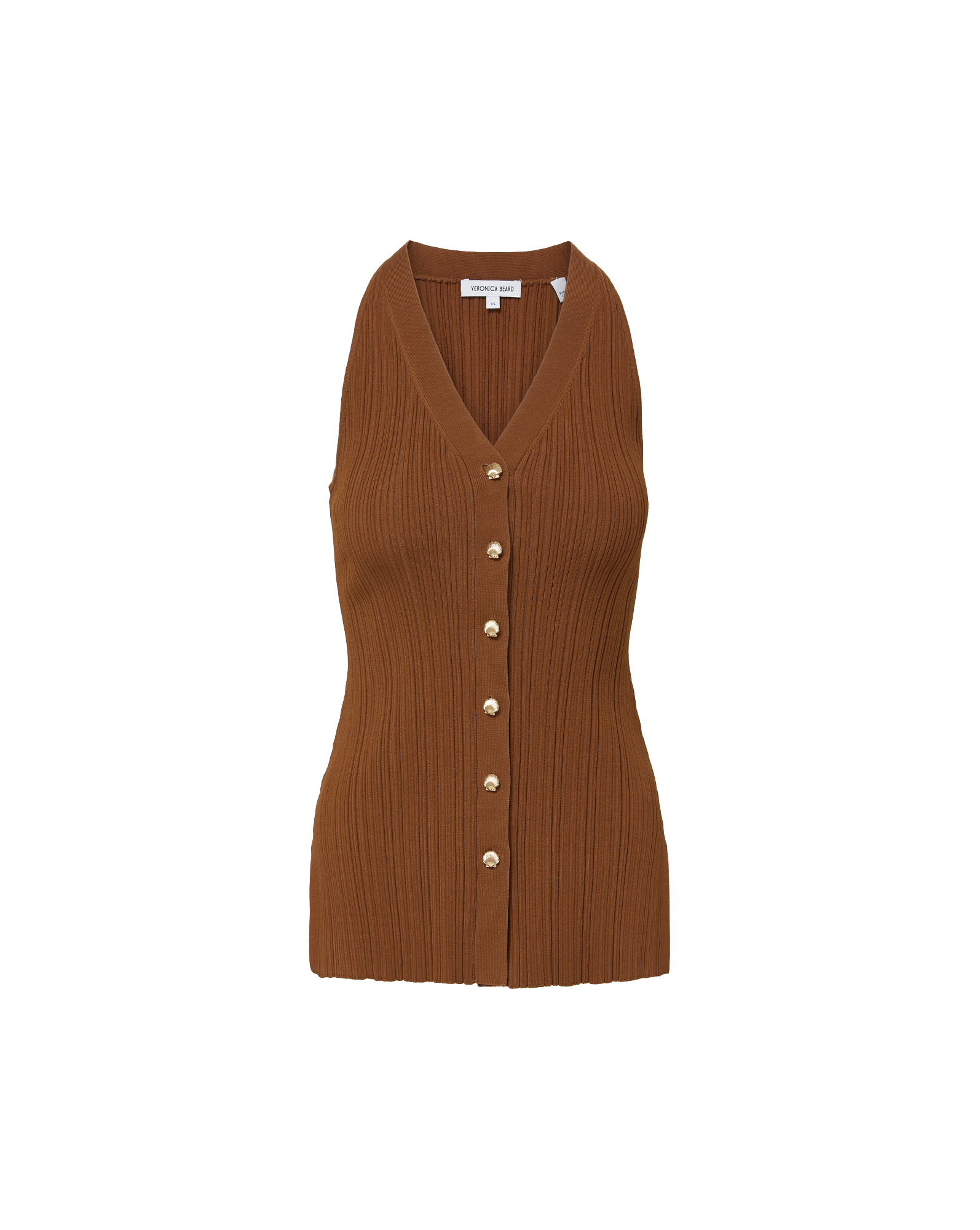 Product details The ease of a knit, the polish of a vest. Expertly spun from a sporty stretch blend, the winkle-resistant Dax vest in sepia brown features an elongated silhouette, a slim fit, and textured ribbing to further lengthen the body. Charming shell-shaped gold buttons complete the look. Pair with the coordinating Massaro pant for an effortless set that’s both high impact and high comfort. - 83% Viscose, 17% Polyester - Closure: Buttons - Dry clean only - Style #2506KS1290709