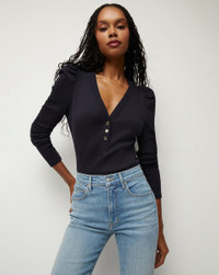 Made from stretch cotton for added comfort, the Dekalb is a great layering piece for work, weekend and beyond. With a slim ribbed fit and deep V-neck, this has all the ease of a tee—but with the feminine romance of gently puffed shoulders. Wear with jeans, under a blazer or over a turtleneck—it's endlessly versatile. DETAILS & FIT - 97% Cotton, 3% Elastane - Sleeve length 32.5" | Length 23", based on a size S - Our model is 5'10" and is wearing a size S - Machine wash on cold - Style #J2211JY020S0466