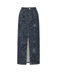 Product details A romantic take on the denim skirt. Crafted from premium Italian stretch cotton, the Devorah features a dark blue wash, laser-printed with an allover floral pattern. Cut in a straight silhouette with a classic five-pocket design, this maxi style is finished with brown topstitching, our signature V belt loops, and a front slit for ease. Pair with a cashmere sweater and tall boots for a polished, layered look. - 98% Cotton, 2% Elastane - Fabric country of origin: Italy - Turn inside out and machine wash cold - Style #J25107210332DJ