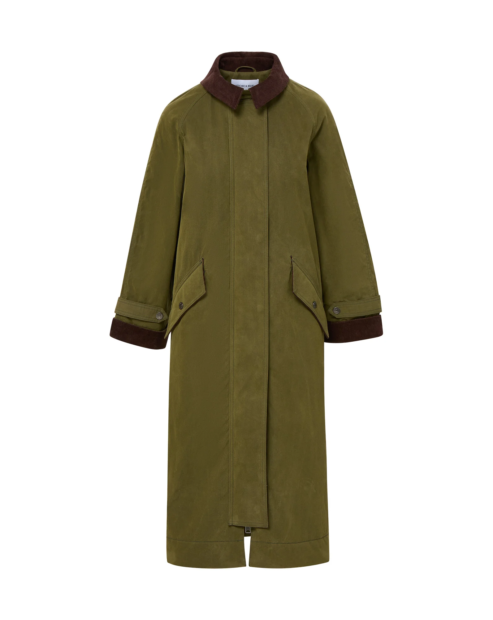 Product details Your new go-to coat. Crafted from a premium cotton blend, the Dietz is an elongated field coat that brings a polished finish to a utilitarian classic. Wax-coated for durability and finished with a traditional storm flap at the back, it’s built for layering—whether rain or shine. Slanted flap pockets, a concealed front zip, and contrast corduroy at the collar and cuffs finish the look. Designed to work overtime in colder months—just layer over anything in your closet. - 74% Cotton, 26% Nylon - Dry clean only - Style #2509N230157