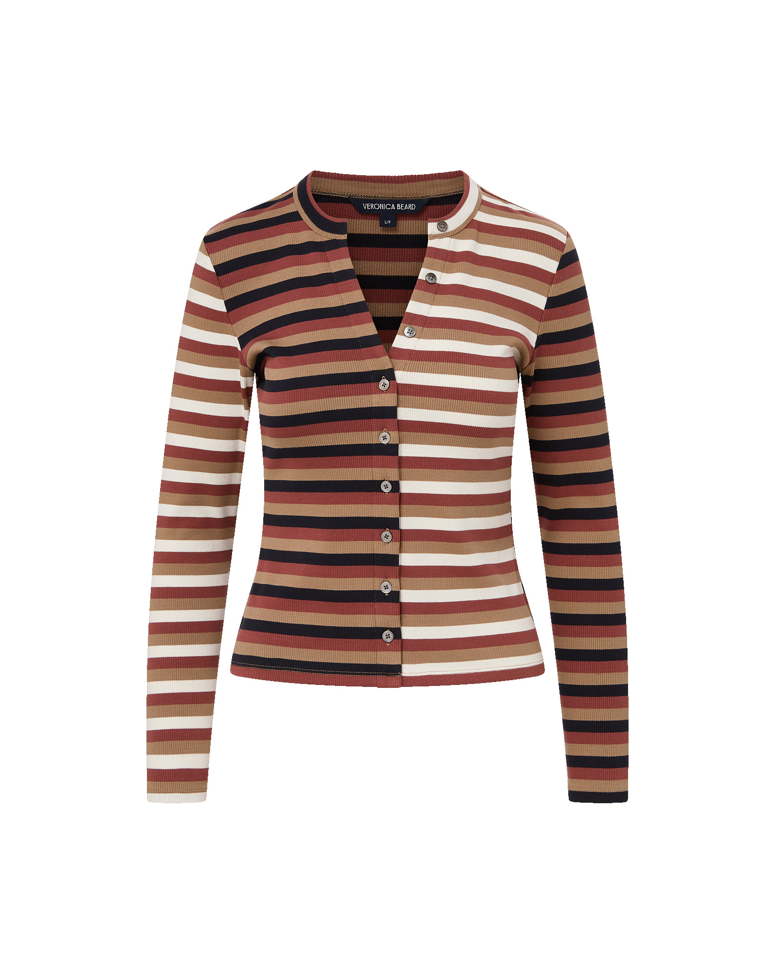 Product details A statement-making staple. The long-sleeve Dilia is crafted from premium stretch cotton in color-blocked beige, red, white, and black stripes. A split crew neckline, pearlized buttons, and soft ribbing add texture and dimension. Wear it with denim for an effortless day look, or tuck it into tailored trousers for a polished finish. - 96% Cotton, 4% Elastane - Turn inside out and machine wash cold. - Style #J2511JY161T0600