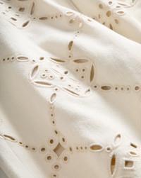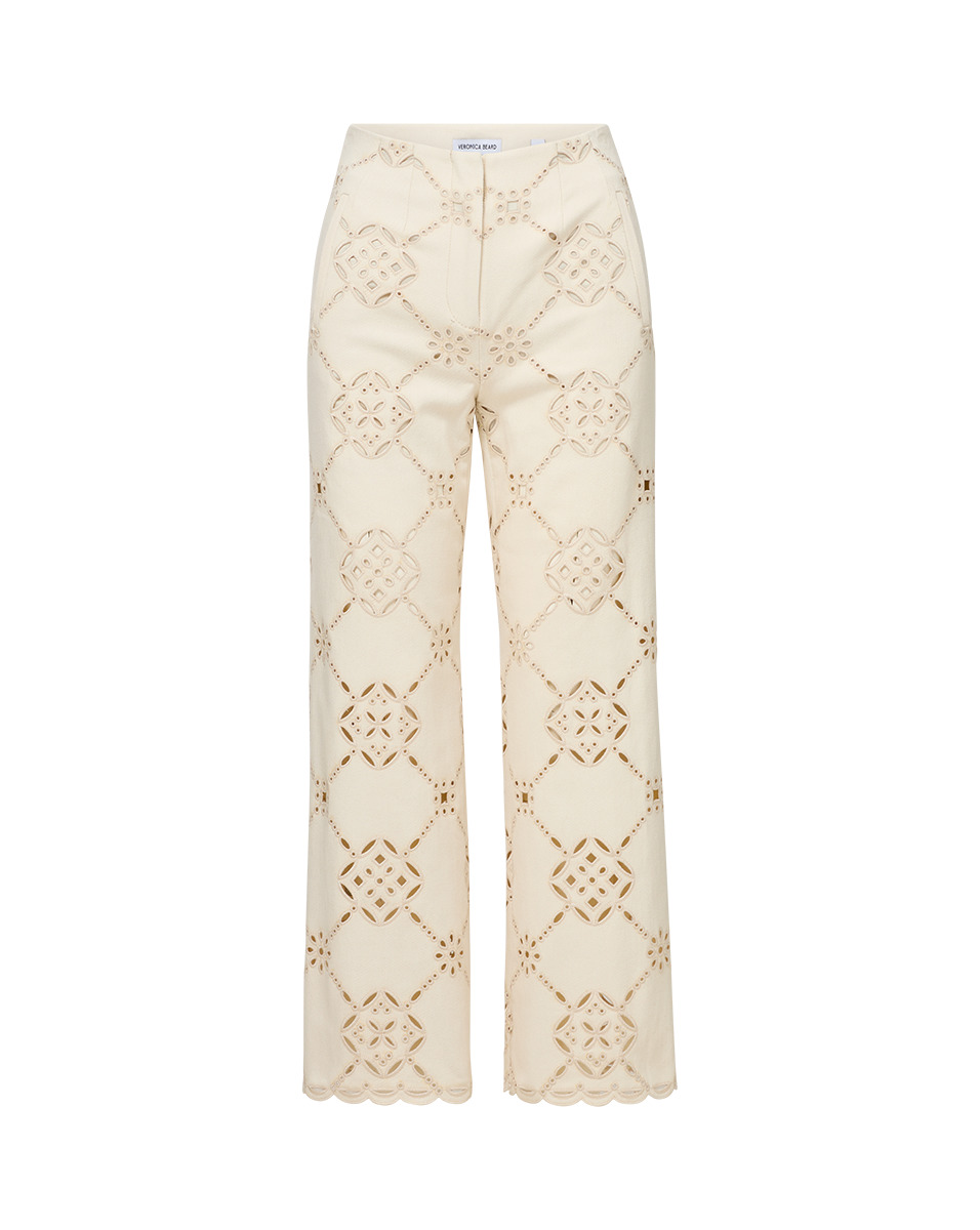 Product details A VB favorite, now updated in sweet eyelet with a scalloped hem. Expertly tailored from premium stretch cotton, the Dova features a high-rise, wide-leg design, giving you a flattering base to create your look while the cropped silhouette lets you show off your shoes. Pair with the matching Adelaide jacket for a chic weekend set. - 98% Cotton, 2% Elastane - Unlined - Dry Clean Only - Style #2502EY376449