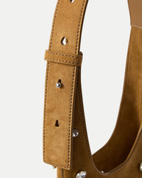 Product details A petite bag that makes a big statement. Crafted from tan Italian suede and embellished with assorted crystals, the Loop shoulder bag is defined by its compact, elongated silhouette. An adjustable collar-stud buckle strap allows for comfortable over-the-shoulder wear, while an interior zip pocket and hook-and-eye closure keep your essentials secure. Equal parts playful and polished, it takes you from day to night with ease. - 100% Suede - Lining: 100% PU - Trim: 100% PU - Fabric country of origin: Italy - 7.1” L x 2.6” W x 8.3” H - Strap Drop: 9" - Store in a cool, dry place and wipe any surface dirt with a dry cloth - Style #H2511HL106Y165