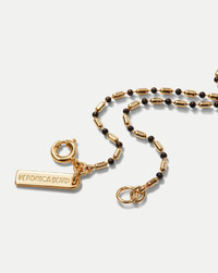 Product details The effortless everyday necklace, made for layering. This dainty, 16-inch chain features a mix of 12-karat gold-plated brass and black enamel-covered beads, securing with a Q clasp for ease. Layer with the Long Enamel Bead Chain Necklace (or two, or three), mixing and matching colors, and style with your favorite VB tees, tank tops, and swimwear. - Details: 12k Gold-Plated Brass, Enamel - Length 16” - Gently wipe surface with a soft cloth to clean. Avoid direct contact with lotions, perfumes, or oils. - Style #96-N0001