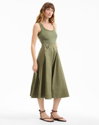 Product details The top: a soft tank. The bottom: a crisp A-line skirt, with a D-ring belt. The latest addition to our mixed-media lineup, the Ennis midi dress in army green, is a one-and-done wardrobe hero that takes the guesswork out of getting dressed. Complete the laidback look with strappy sandals or pair with platforms and a scarf for getaway chic. - 96% Cotton, 4% Elastane - Closure: Hidden side zip - Turn inside out and machine wash cold. Lay flat to dry. - Style #J2506JY15221272