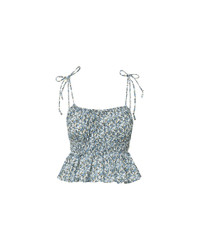 Product details Pretty, please. Made from stretch cotton voile, the Erving tank top features a cinched, shirred empire waist, a ruffled peplum, and a romantic garden print in pale blue. Adjustable spaghetti straps complete the look. Wear it solo or layered under a jacket for extra polish—it's a standout top for both day and night. - 60% Cotton, 40% Viscose - Lining: 100% Cotton - Dry clean only - Style #J2505VO2741328