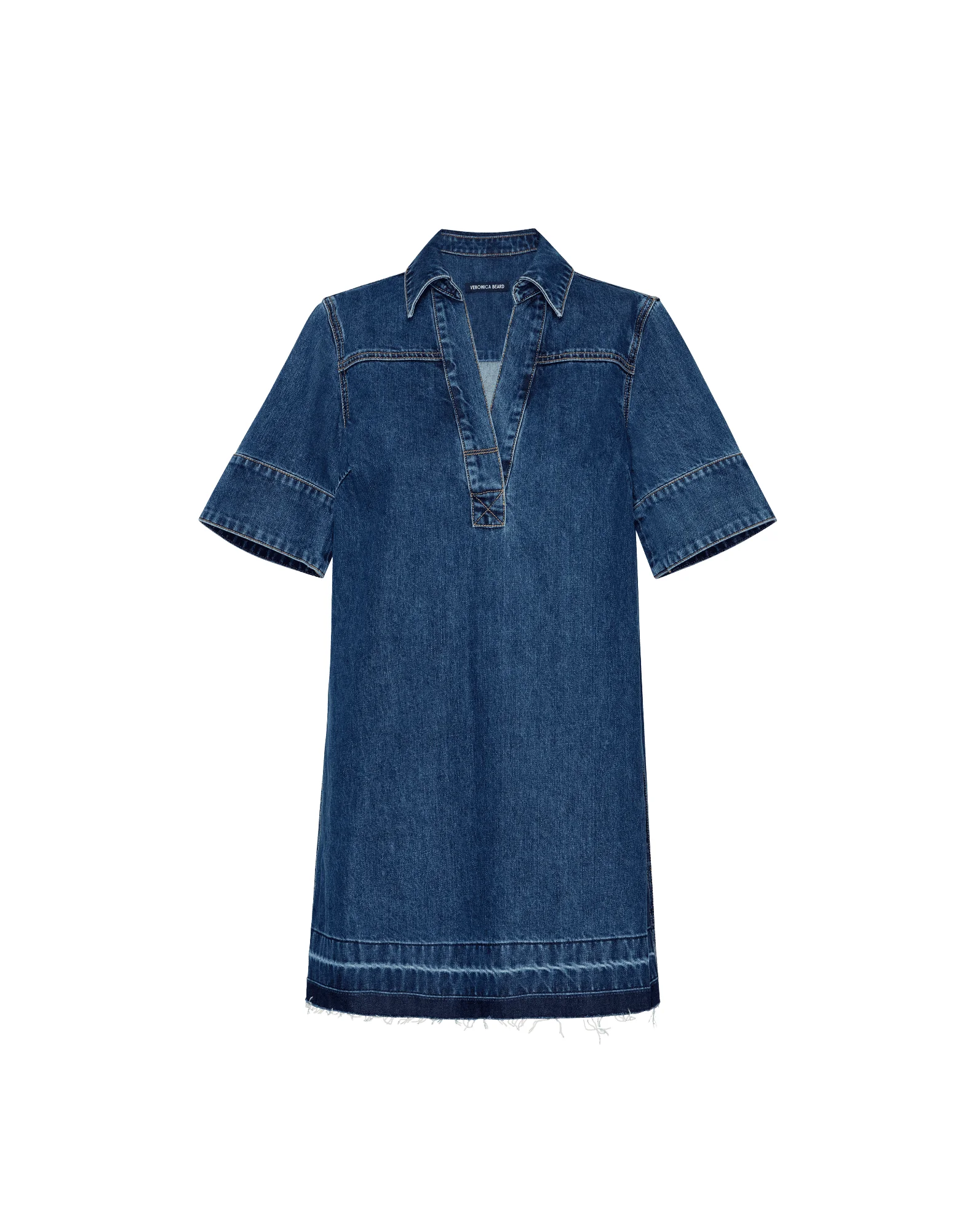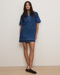 Product details Crafted from premium denim, the Felice is a cool, structured take on the mini shirtdress. Designed with a collared split neckline and buttonless half placket, it features quarter sleeves and a raw-edged let-down hem for a textured finish. Effortless and versatile, it pairs with everything from sandals to slingback heels, boots, or sneakers. - 100% Cotton - Machine wash cold - Style #J25067110078SB