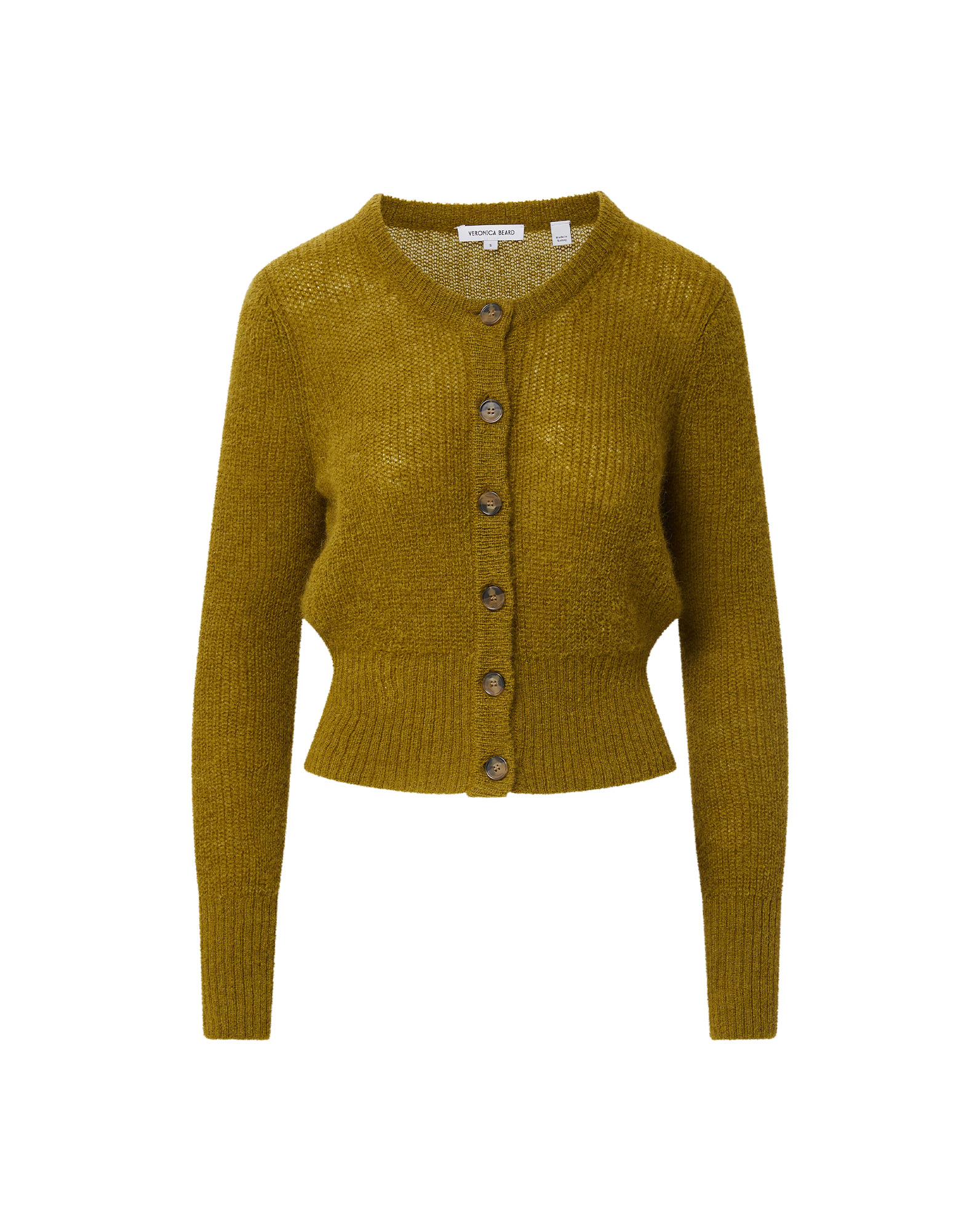 Product details The essential fall knit. Expertly spun from an Italian mohair-alpaca blend, the Gilmour cardigan is both lightweight and warm, featuring a slim-fitting silhouette that gently hugs the body. A wide-ribbed hem, crew neckline, and tortoise buttons complete the look. Hitting at the high hip, it’s the perfect match for high-waisted denim, skirts, and more—whether worn layered or solo. - 35% Mohair, 35% Alpaca, 30% Polyamide - Fabric country of origin: Italy - Dry clean only - Style #2509KA1990732