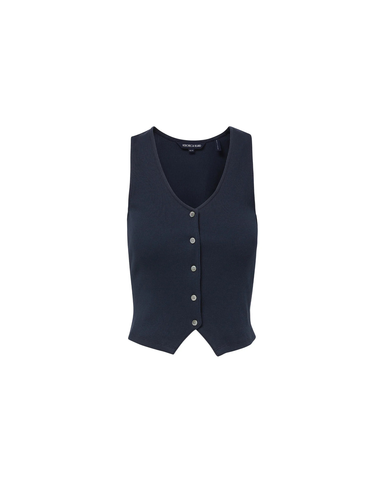 Product details The ease of a tee, the polish of a vest. A VB favorite, the Hoorne button-down tank top is crafted from soft stretch cotton and finished with white pearlized buttons. It features a deep V-neckline, subtle ribbing, and an angled cutaway hem for a relaxed take on a tailoring favorite. Wear it as is with jeans or under a blazer... it’s perfect anytime, with anything. - 96% Cotton, 4% Elastane - Machine wash cold - Style #J2507JY152T0261