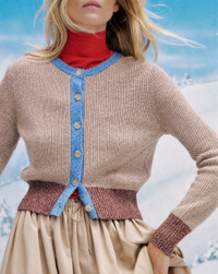 Product details The essential knit for transitional styling. Spun from a premium merino-wool blend in beige, the Ibra cardigan features a slouchy, relaxed fit with soft ribbing throughout. Contrasting brown hem and cuffs and a pop of blue trim complete the look, lending a modern, color-blocked finish. Wear it solo or layered over a T-shirt, and pair with your favorite VB denim. - 55% Merino Wool, 45% Cotton - Dry clean only. - Style #J2511KA5491085