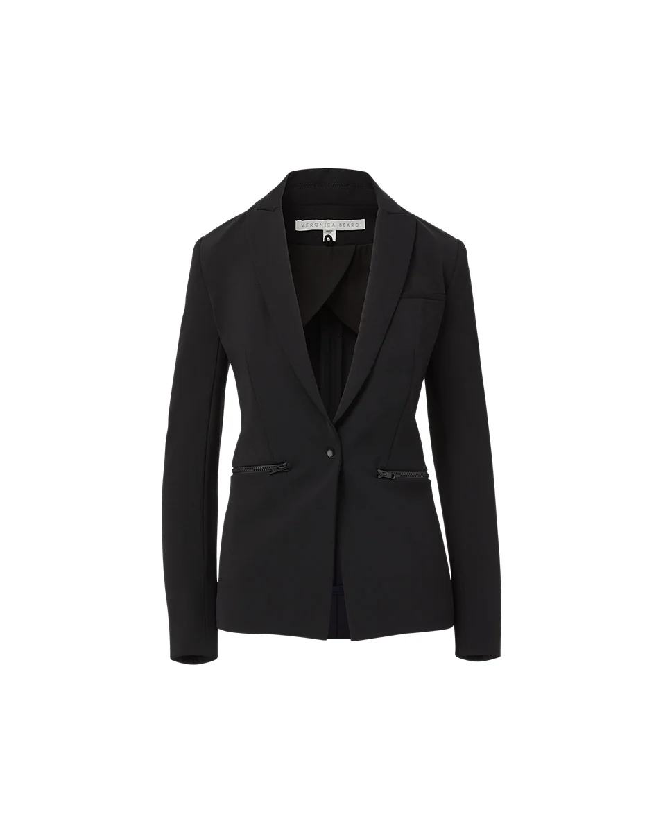 Wrinkle-resistant and super comfortable, there are plenty of reasons to love our Scuba Jacket. Designed with our signature stretch nylon fabric, cool zip pockets and snap closures, the Scuba Jacket is the ultimate travel companion. Pair with the Scuba Legging or the Zip Back Scuba Pant for a matching suit!Pair with a dickey to complete the look. DETAILS & FIT - 86% Nylon, 14% Elastane - Length 27.5” | Shoulder Width 15.25”, based on a size 4 - Our model is 5’10” and is wearing a size 4 - Professional dry-clean only - Style #COREBSS1078