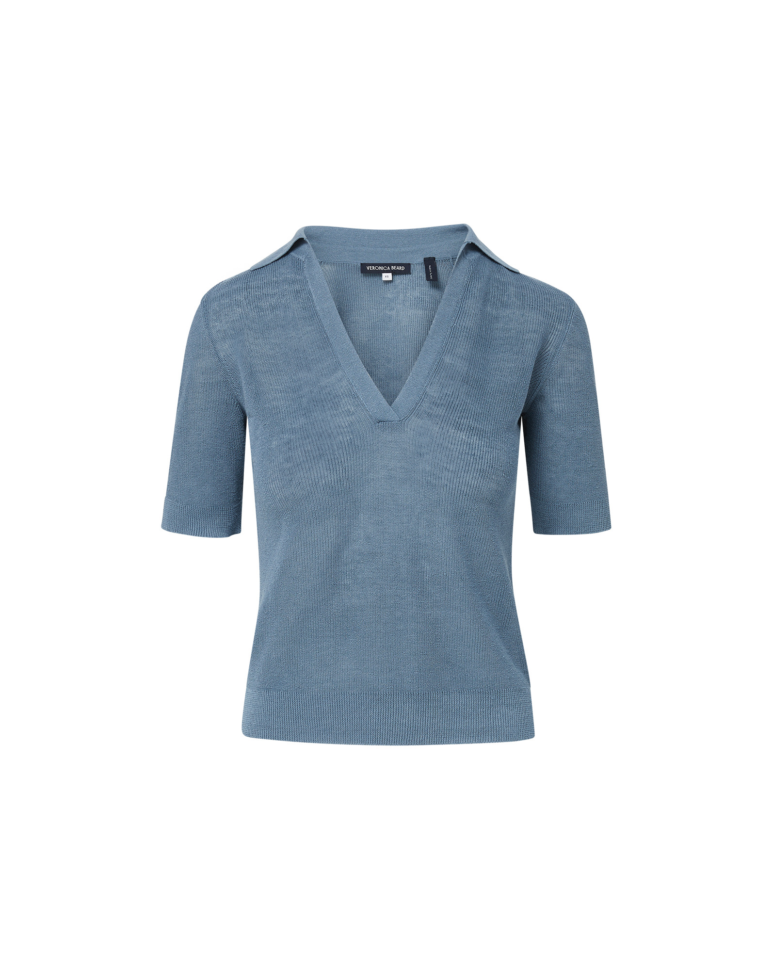 Product details Spun from soft stretch linen, the Issa top is a refined twist on the classic polo shirt. In light blue, it's defined by a relaxed fit, flattering half sleeves, a ribbed trim, and a collared V-neck. The ultimate in versatility, this pairs well with anything and everything—jeans, shorts, maxi skirts, minis, you name it. - 83% Linen, 17% Polyamide - Dry clean only - Style #J2506KL2290779