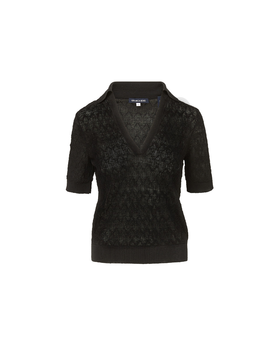 Product details Spun from soft stretch linen, the Issa top is a refined twist on the classic polo shirt. Available in black and khaki, it features flattering half sleeves, a collared V-neck, and a subtle tone-on-tone knit pattern. The ultimate in versatility, this pairs well with anything and everything—jeans, shorts, maxi skirts, minis, and more. - 83% Linen, 17% Polyamide - Dry clean only - Style #2505KL2290779